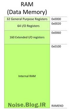 4.رجیسترهای I/O توسعه یافته (Extended Register) : در بعضی از میکروکنترلرها بدلیل امکانات اضافه تری که دارند تعداد 64 عدد رجیستر I/O کافی نبوده و به فضای بیشتری نیاز دارند.